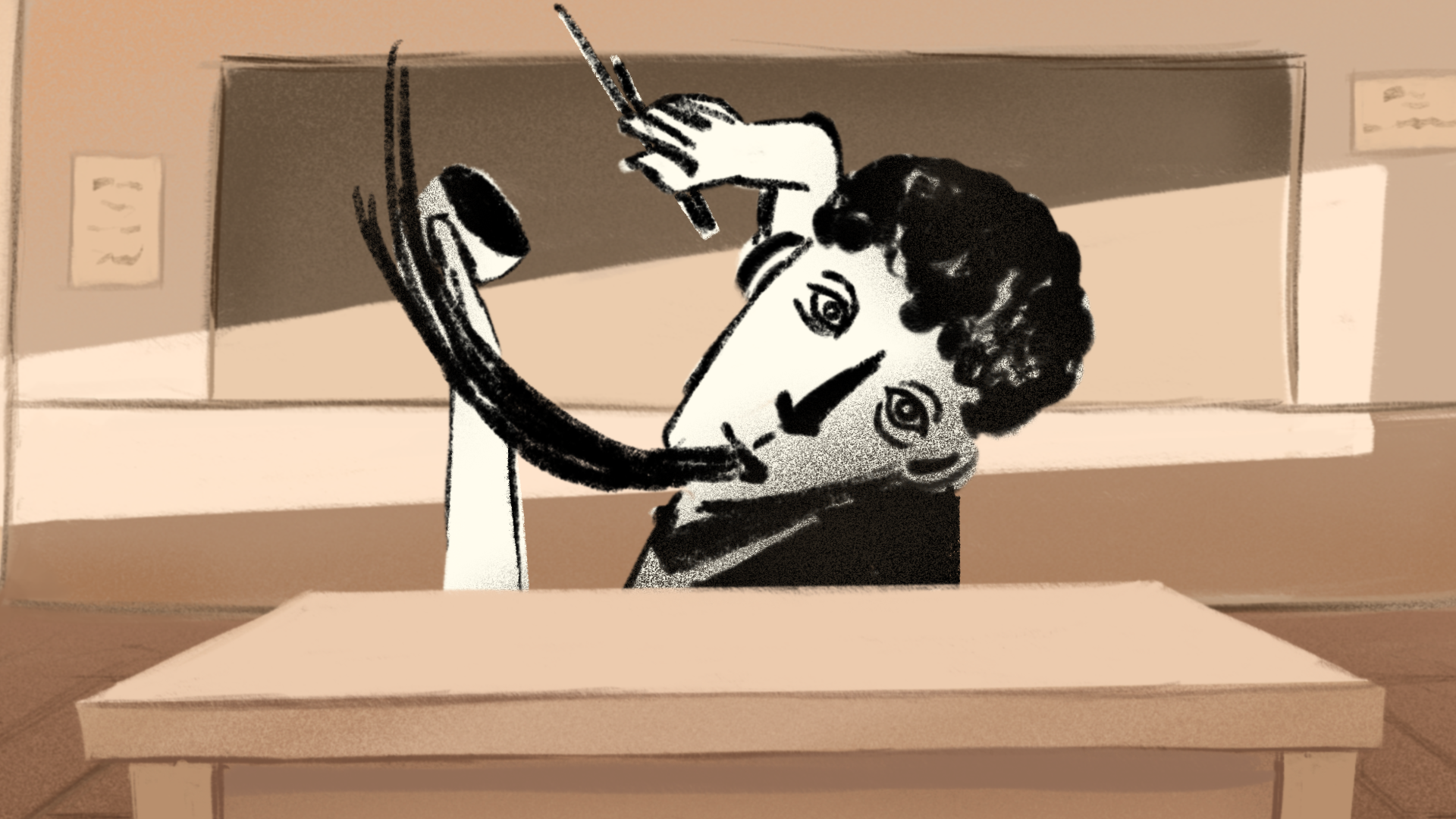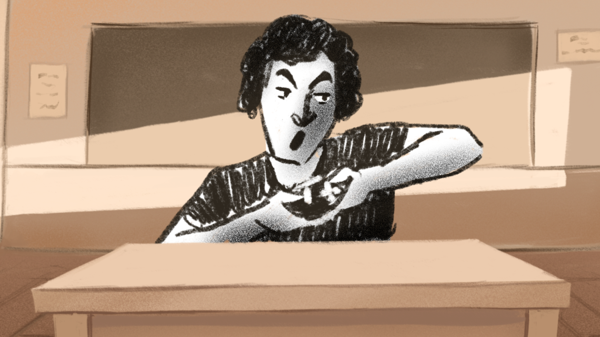Players compete through fast-paced reflex challenges inspired by the Stroop Test. Through multiple class rounds, players earn points, sabotage each other, and ultimately fight the student in a tug-of-war attempt to reveal what the student is doing.
